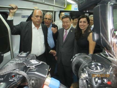 2014年7月2日,在具有156年悠久历史的中央车站,进行了中车制造的又一批新型电动车组上线运营剪彩仪式,巴西里约州州长,中国驻里约领事馆总领事宋扬,商务参赞 免费不收费看污在线观看-免费看污污-免费看污污污视频软件,交通厅新老厅长及业主,段方高层参加了剪彩仪式,并亲自乘坐“中国龙”到达世界杯主赛场-马拉卡纳球场,这列有着蓝色的车头和不锈钢涂装车体的电动车组于2014年2月28日从中国北车长客股份公司起运,经历近三个月的旅程,5月20日抵达里约港口,经过清关,5月28日抵达车辆段,历经一个月时间完成了所有例行,型式试验后正式上线载客运营。